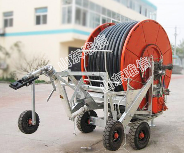 Hose reel irrigation system is mainly make up of the chassis, reel, PE pipe, water turbine, gearbox, driving the speed compensation device and water composition.